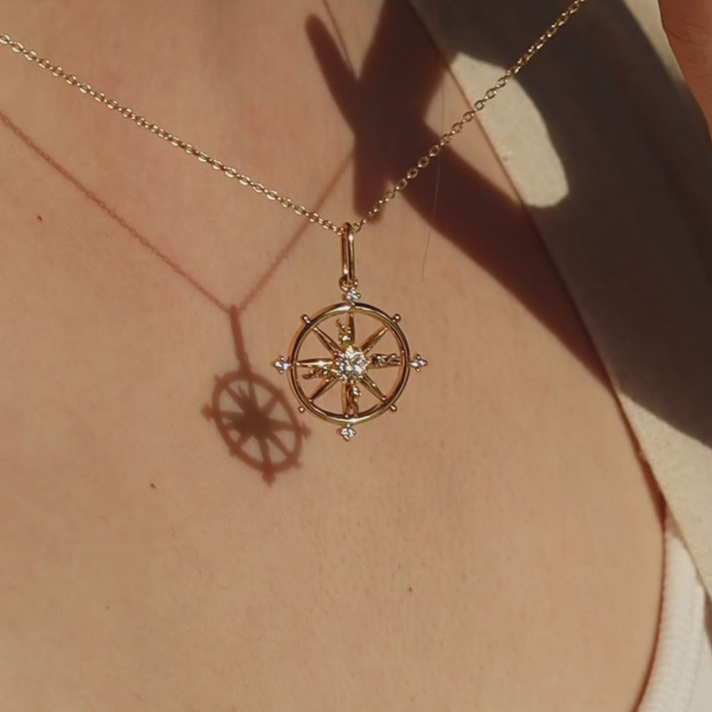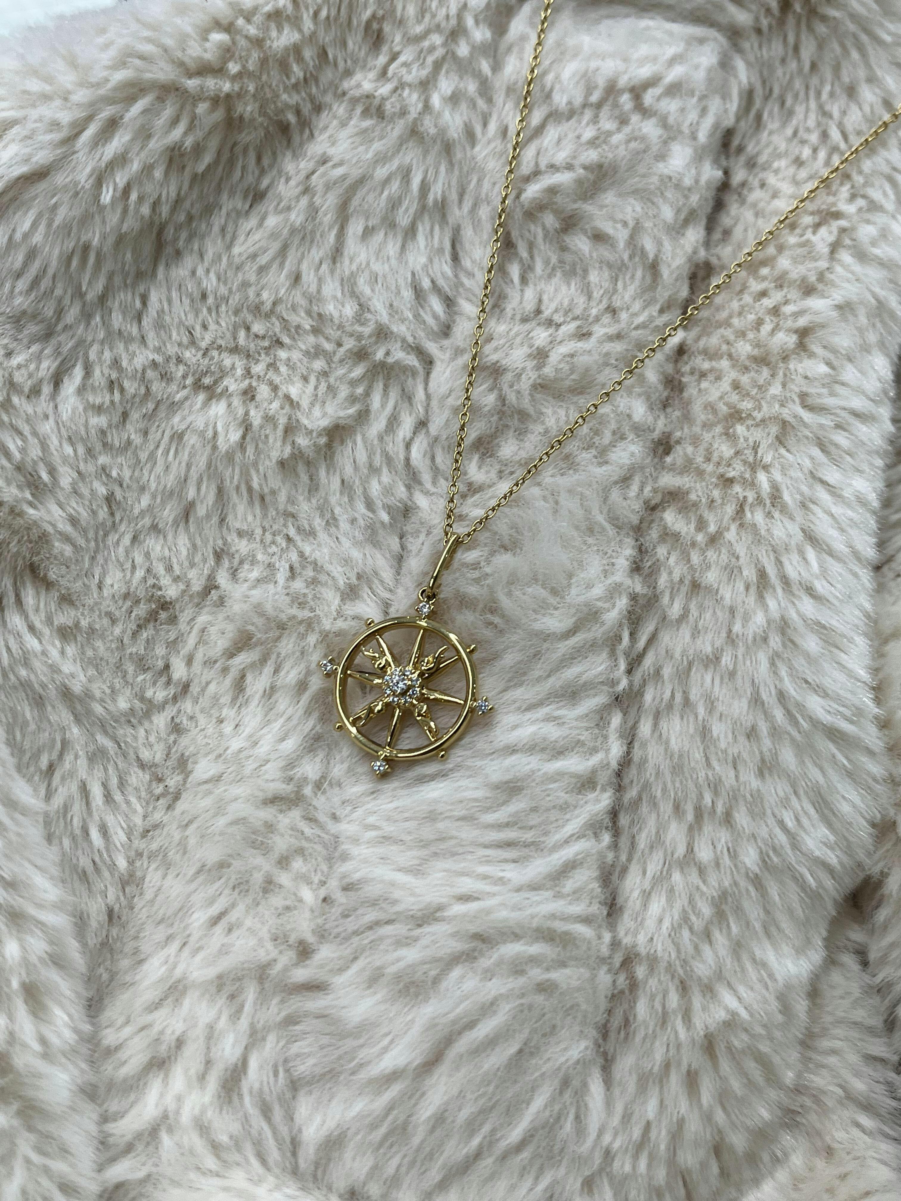Merging the symbolic power of the dharmachakra with a touch of organic elegance, this charm showcases antler-like extensions radiating from a sparkling stone center. Paired with our delicate 18k gold-plated chain, this necklace embodies both wisdom and spiritual progression.