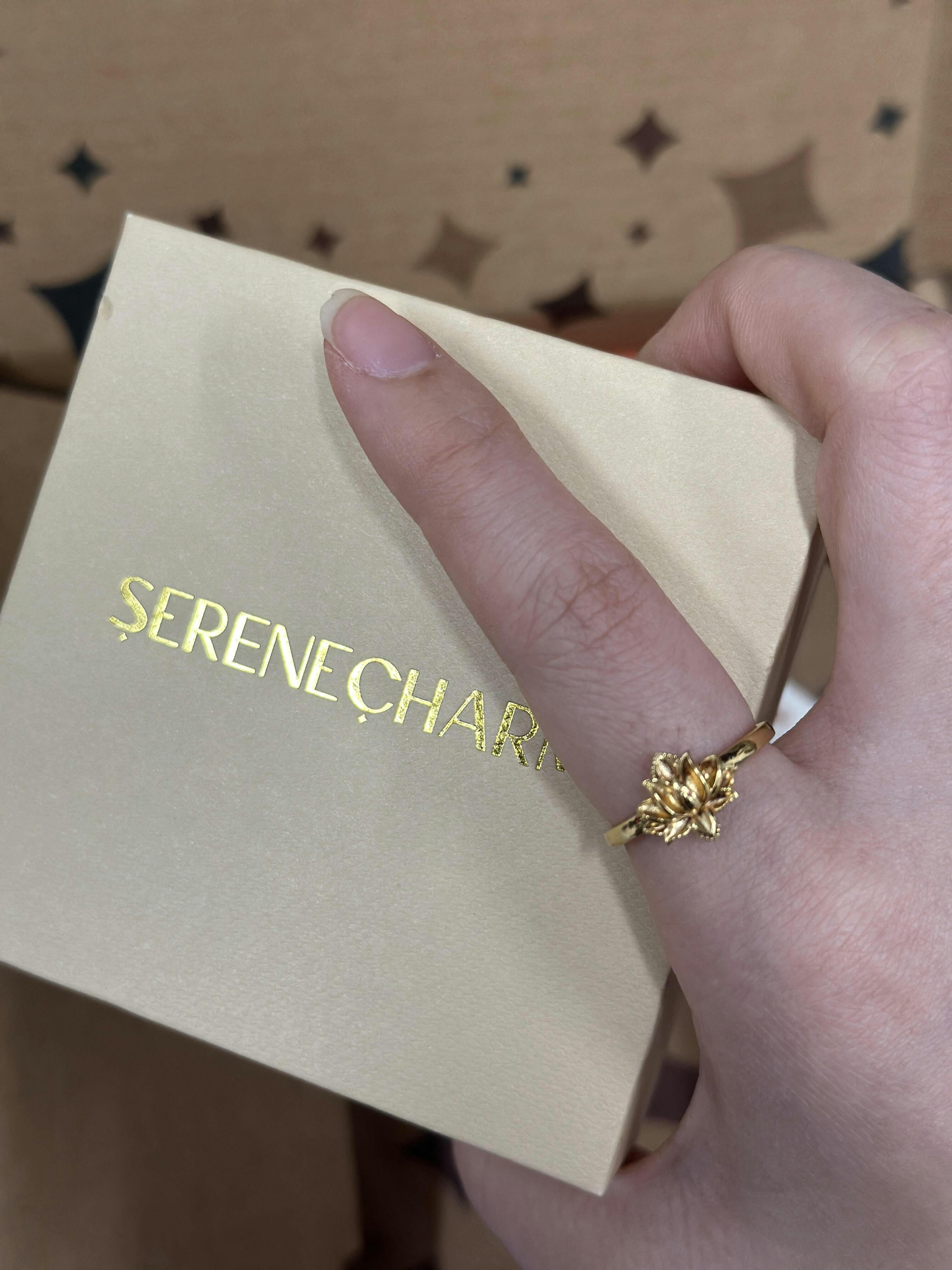 Showcasing fine craftsmanship, this lotus ring features intricate lines with alternating recessed and raised details that create a dynamic, textured look. Subtle beaded accents enhance the design, adding dimension to the lotus motif and making it a striking piece for everyday elegance.